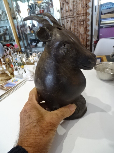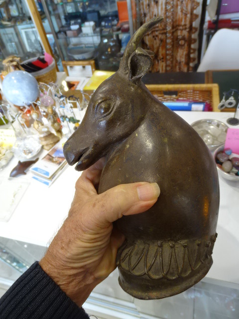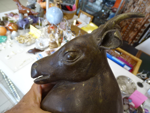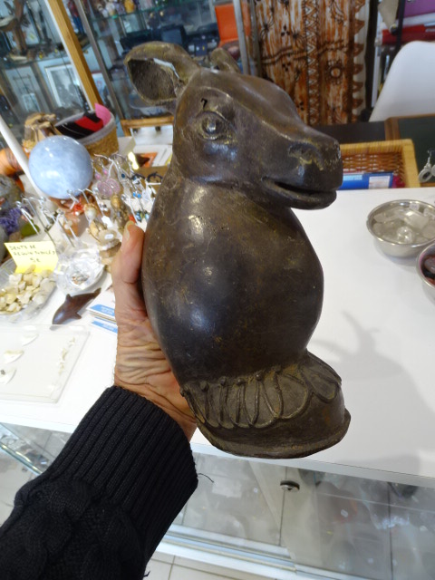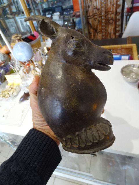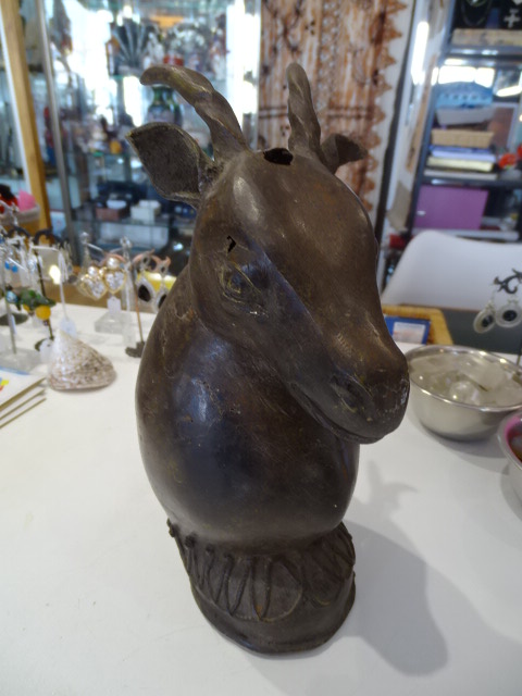 Tête d antilope Ancienne en bronze creux.