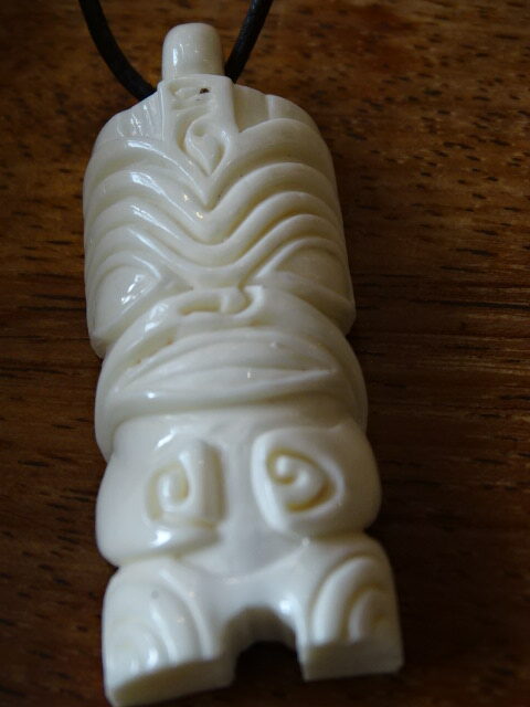 Tiki en os Oceanien.4cm par 2cm.10grs.Pendentif.Porte fortune.